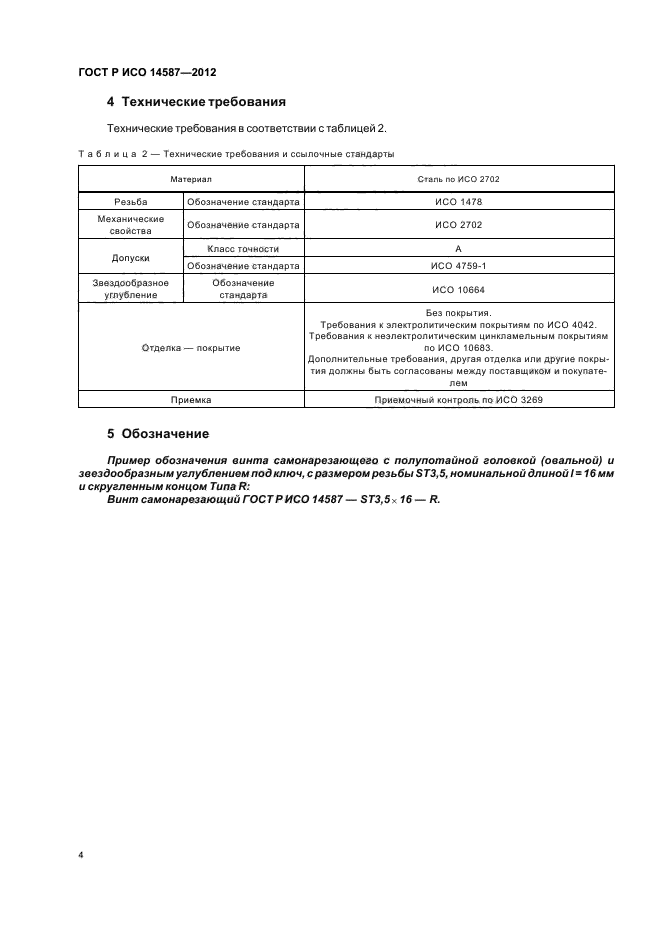 Настоящий стандарт устанавливает характеристики самонарезающих винтов с полупотайной головкой (овальной) и звездообразным углублением под ключ с резьбой от ST2,9 до ST6,3 включительно
