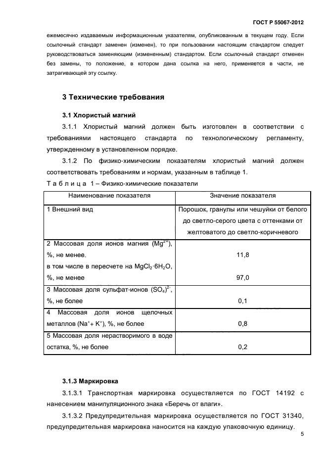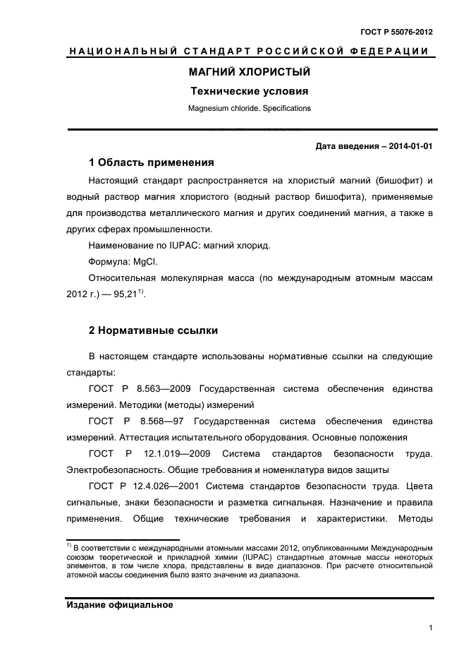 Настоящий стандарт распространяется на хлористый магний (бишофит) и водный раствор магния хлористого (водный раствор бишофита), применяемые для производства металлического магния и других соединений магния, а также в других сферах промышленности