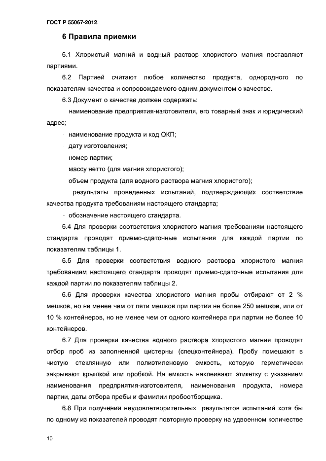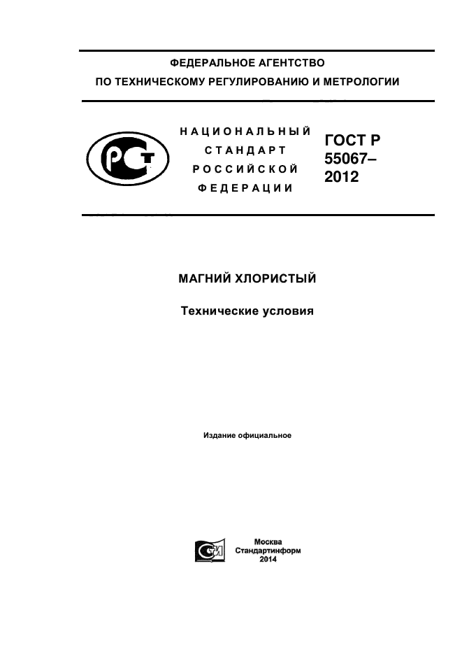 | Область и условия применения: | Настоящий стандарт распространяется на хлористый магний (бишофит) и водный раствор магния хлористого (водный раствор бишофита), применяемые для производства металлического магния и других соединений магния, а также в других сферах промышленности |