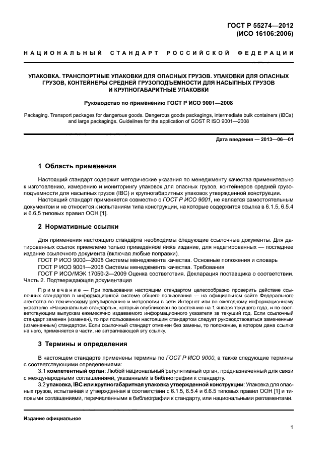 Настоящий стандарт содержит методические указания по менеджменту качества применительно к изготовлению, измерению и мониторингу упаковок для опасных грузов, контейнеров средней грузоподъемности для насыпных грузов (IBC) и крупногабаритных упаковок утвержденной конструкции.