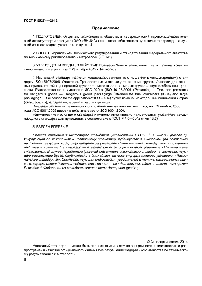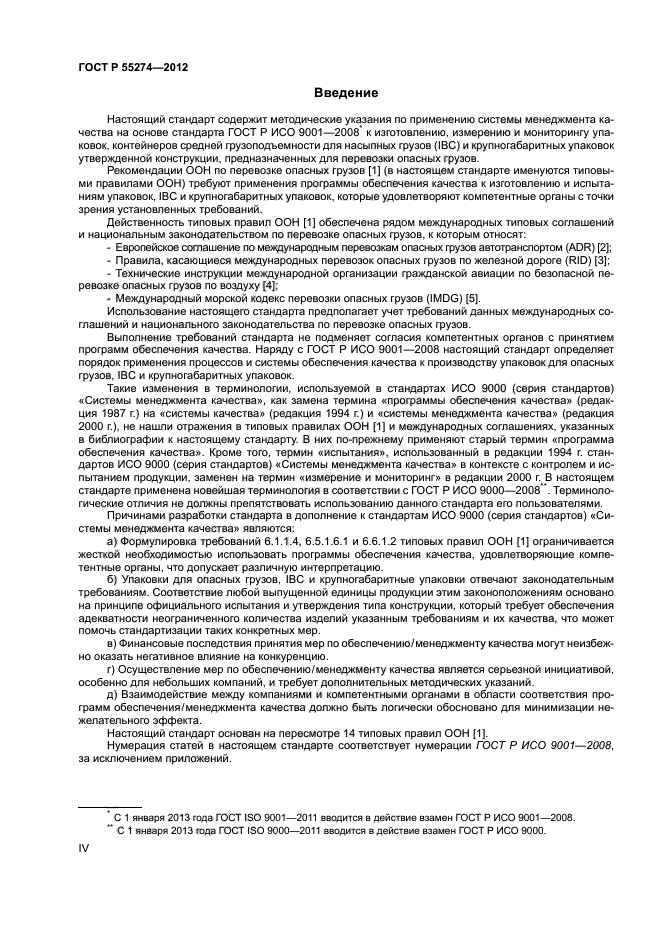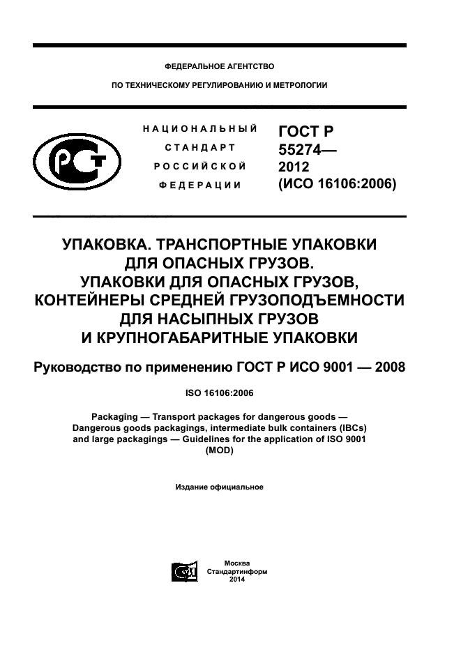 | Название рус.: | Упаковка. Транспортные упаковки для опасных грузов. Упаковки для опасных грузов, контейнеры средней грузоподъемности для насыпных грузов и крупногабаритные упаковки. Руководство по применению ГОСТ Р ИСО 9001-2008 |