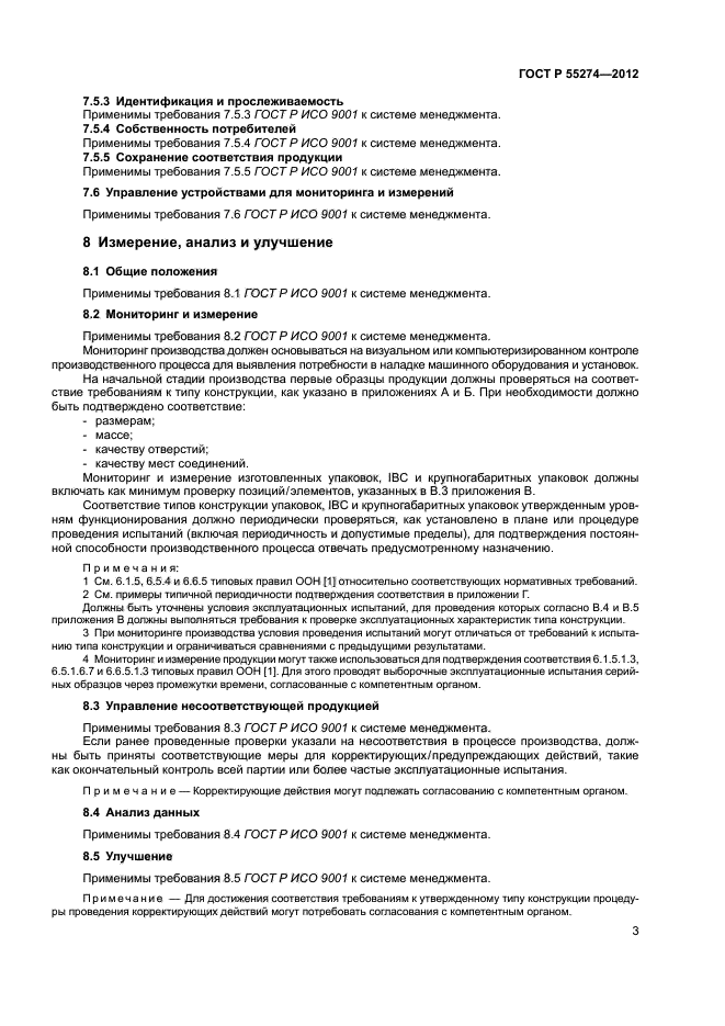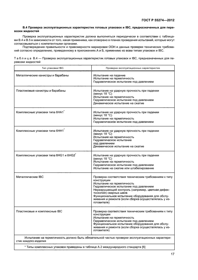 | Область и условия применения: | Настоящий стандарт содержит методические указания по менеджменту качества применительно к изготовлению, измерению и мониторингу упаковок для опасных грузов, контейнеров средней грузоподъемности для насыпных грузов (IBC) и крупногабаритных упаковок утвержденной конструкции.