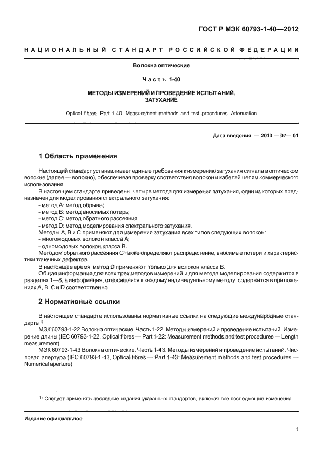 | Обозначение: | ГОСТ Р МЭК 60793-1-40-2012 |