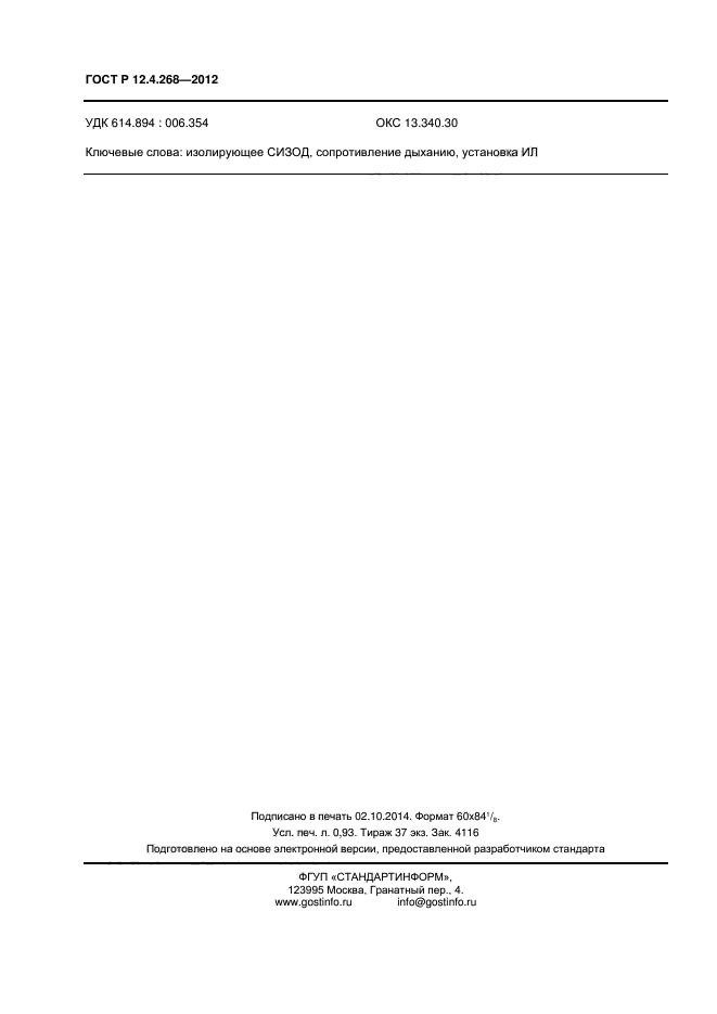| Обозначение: | ГОСТ Р 12.4.268-2012 |