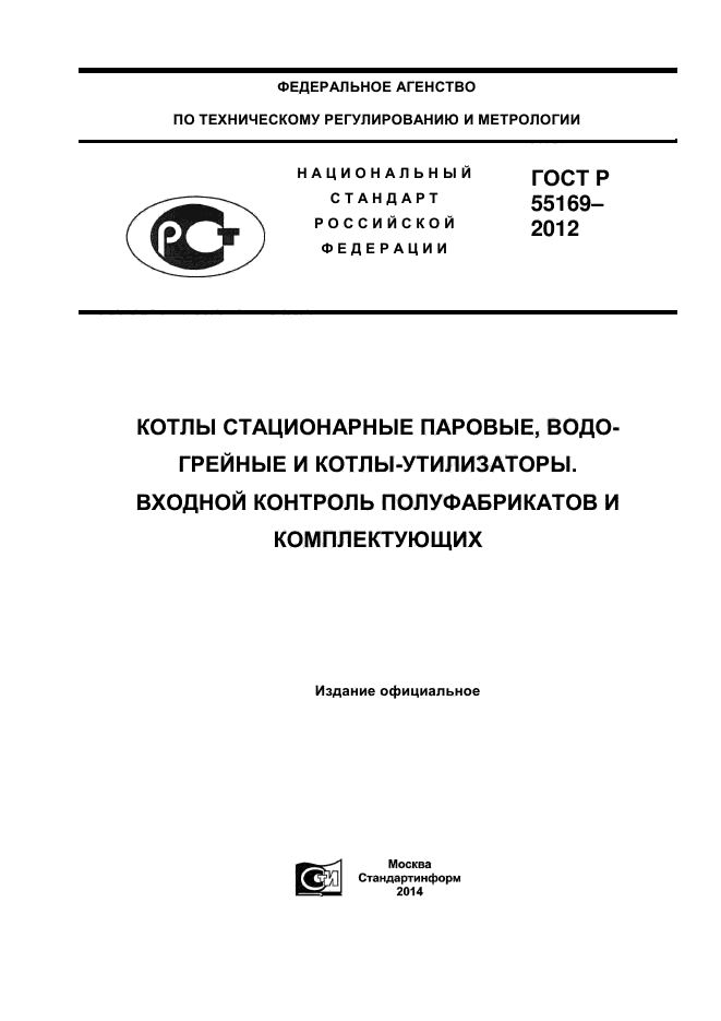 | Название рус.: | Котлы стационарные паровые, водогрейные и котлы-утилизаторы. Входной контроль полуфабрикатов и комплектующих |