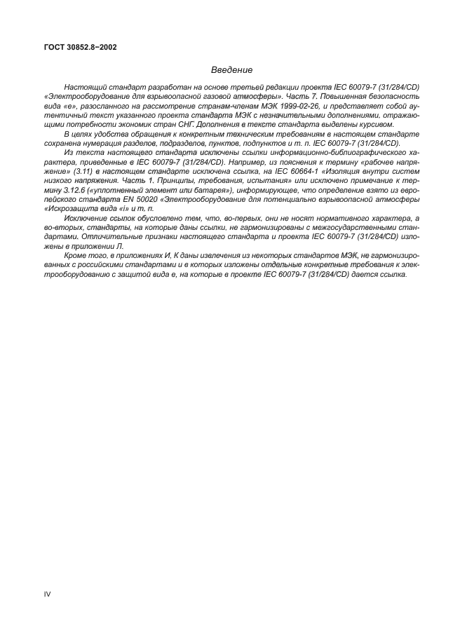 | Название рус.: | Электрооборудование взрывозащищенное. Часть 7. Защита вида е |