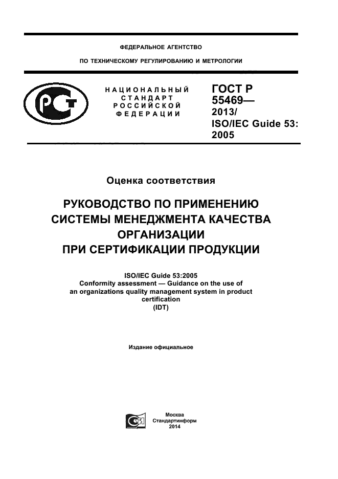 | Название рус.: | Оценка соответствия. Руководство по применению системы менеджмента качества организации при сертификации продукции |