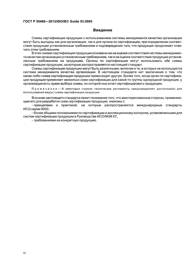 В настоящем стандарте дано описание общего подхода, с помощью которого органы по сертификации могут разработать и применять схемы сертификации продукции, используя требования системы менеджмента качества организации