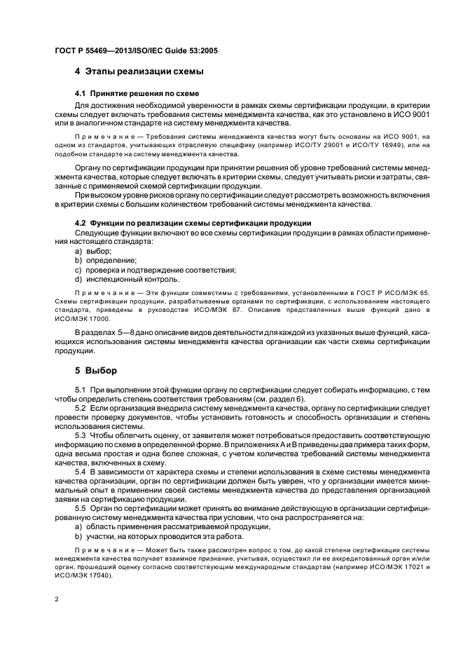 | Область и условия применения: | В настоящем стандарте дано описание общего подхода, с помощью которого органы по сертификации могут разработать и применять схемы сертификации продукции, используя требования системы менеджмента качества организации |