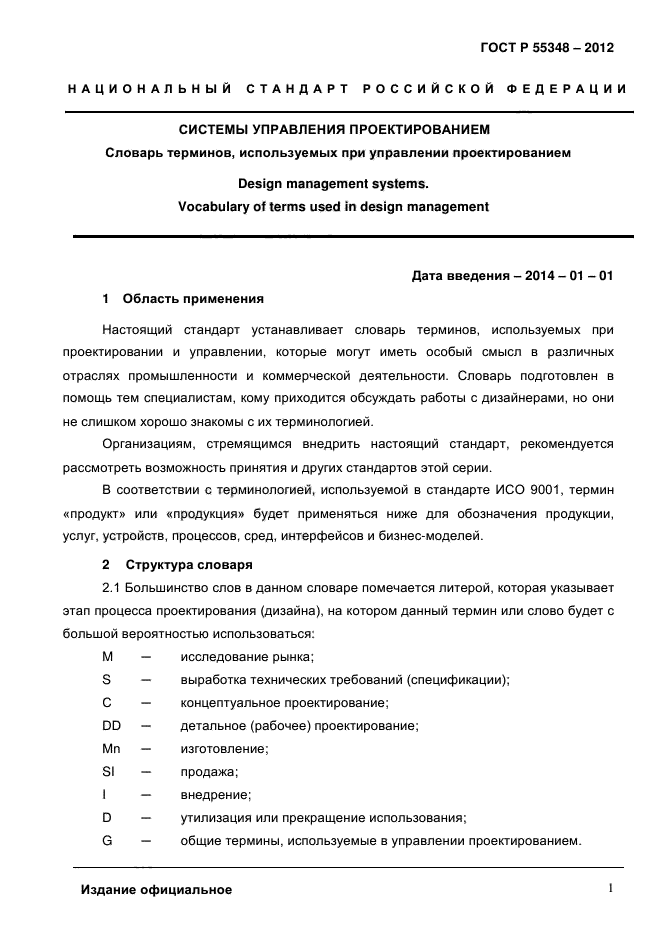 Настоящий стандарт устанавливает словарь терминов, используемых при проектировании и управлении, которые могут иметь особый смысл в различных отраслях промышленности и коммерческой деятельности. Словарь подготовлен в помощь тем специалистам, кому приходится обсуждать работы с дизайнерами, но они не слишком хорошо знакомы с их терминологией.