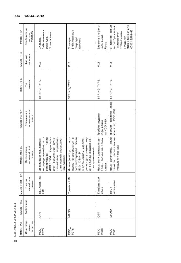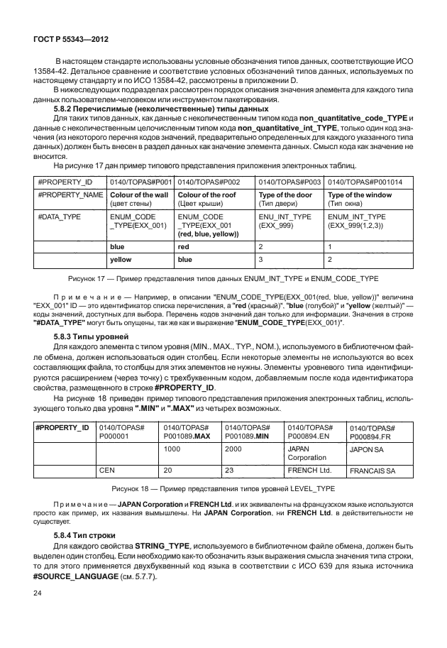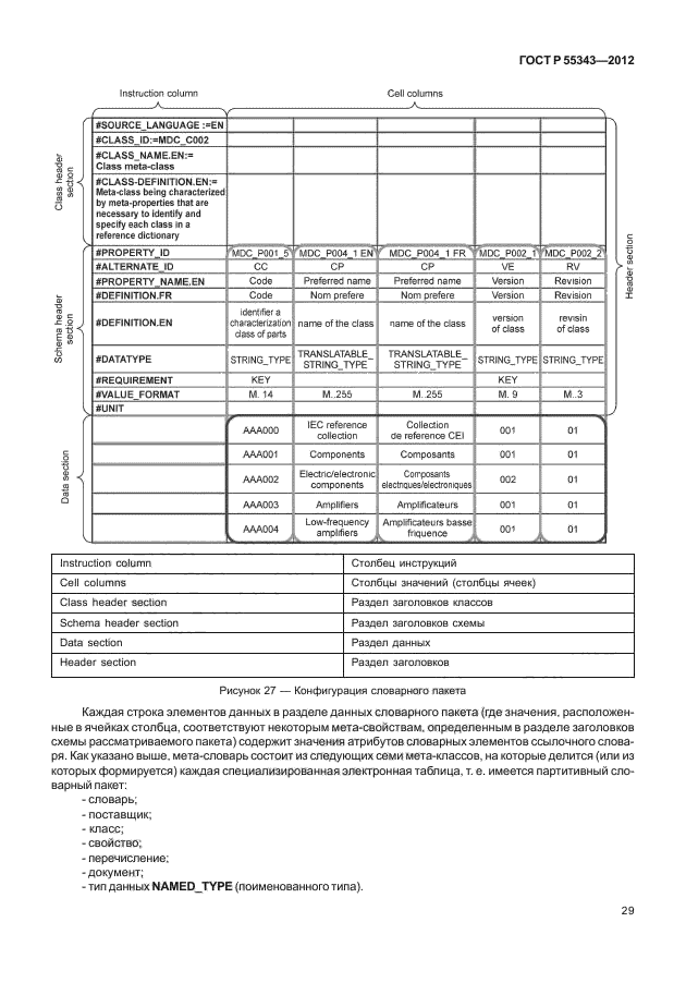В настоящем стандарте также установлено стандартное взаимное отображение данных, содержащих словарь, представленный в формате электронных таблиц, удовлетворяющих требованиям настоящего стандарта, и данных, представленных по ИСО 13584-25 и соответствующих требованиям модели EXPRESS для словарного обмена |
