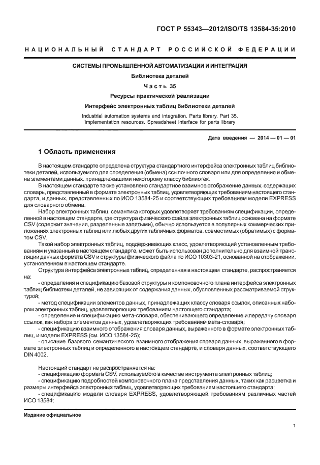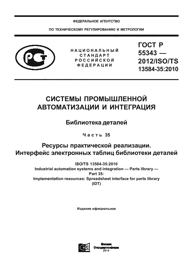 | Название рус.: | Системы промышленной автоматизации и интеграция. Библиотека деталей. Часть 35. Ресурсы практической реализации. Интерфейс электронных таблиц библиотеки деталей |