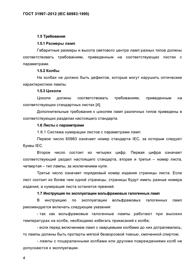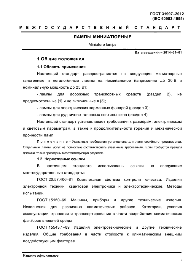 | Область и условия применения: | Настоящий стандарт распространяется на следующие миниатюрные галогенные и негалоген-ные лампы на номинальное напряжение до 30 В и номинальную мощность до 25 Вт: