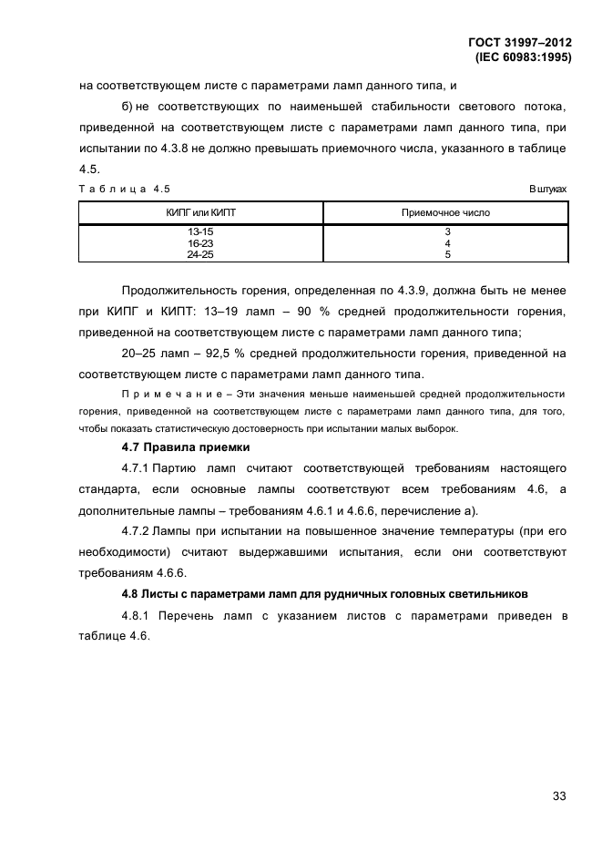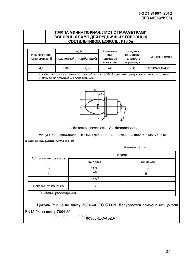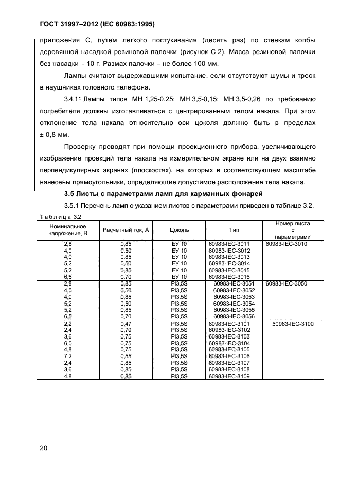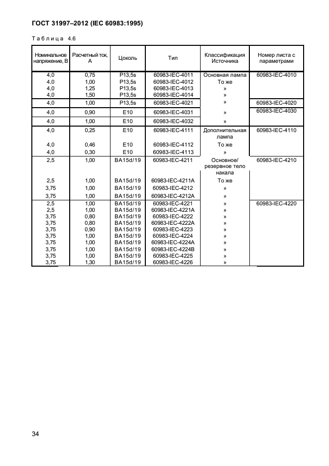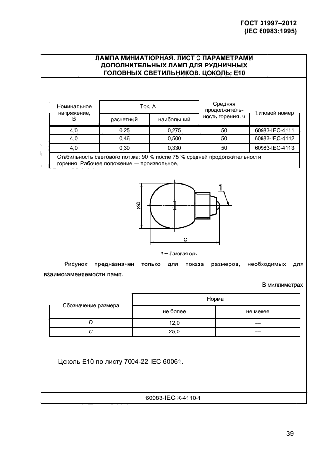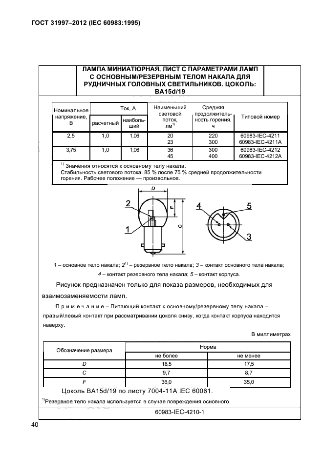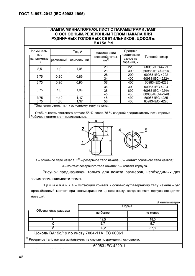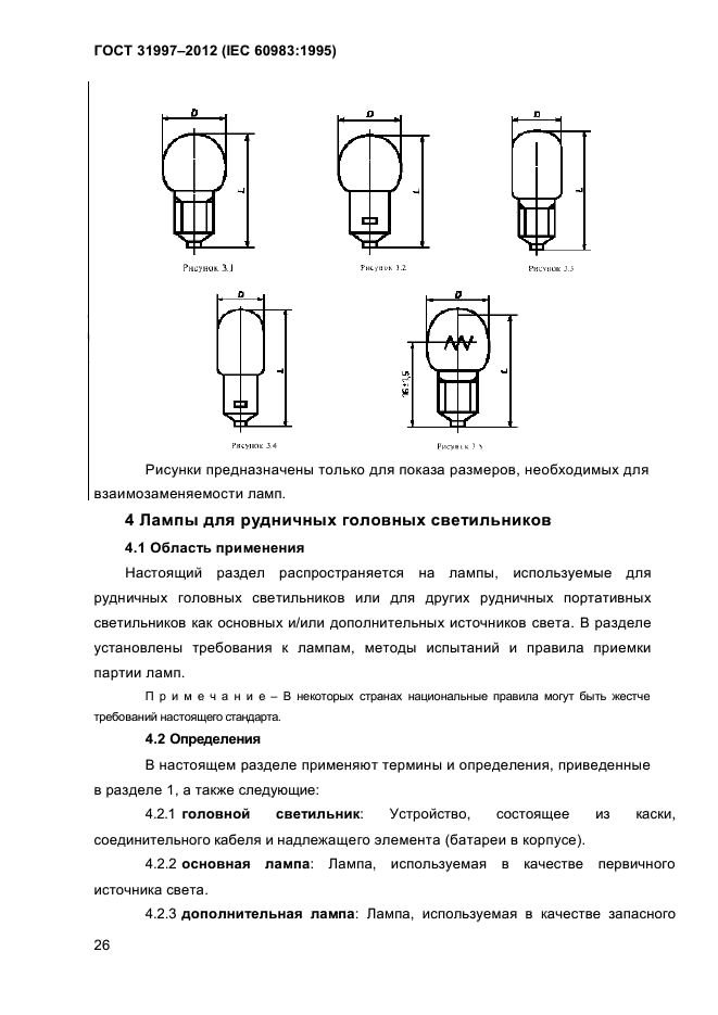 - лампы для рудничных головных светильников (раздел 4).
