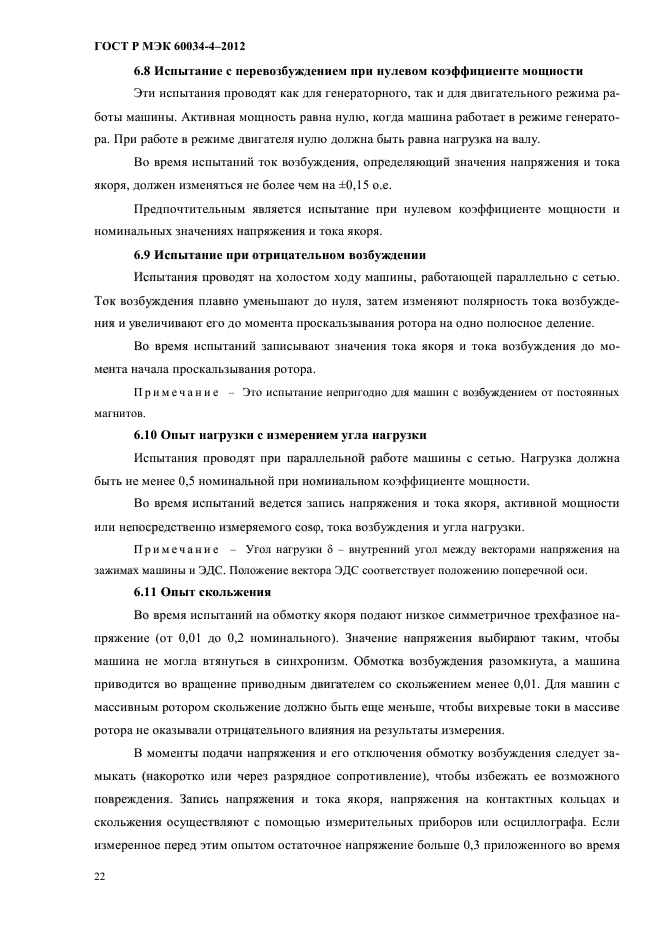 Стандарт не распространяется на машины с осевым возбуждением и специальные машины, такие как реактивные и индукторные. Стандарт не требует обязательного проведения любых или всех описанных испытаний. Программа испытаний является предметом соглашения между производителем и потребителем |