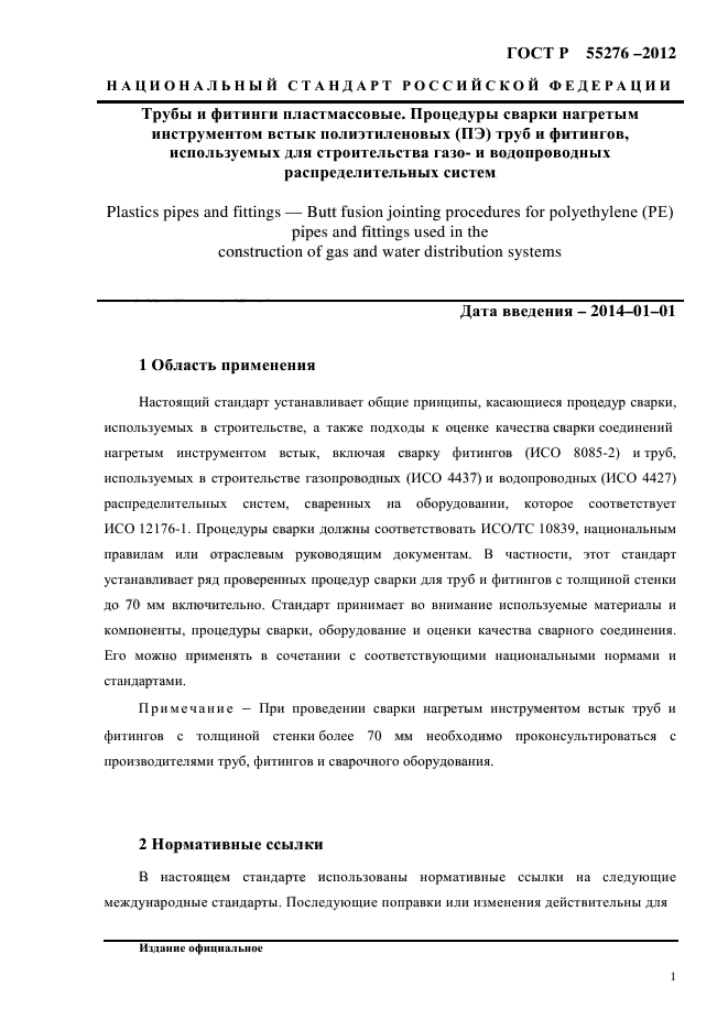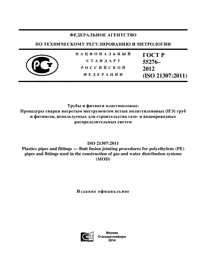 | Название рус.: | Трубы и фитинги пластмассовые. Процедуры сварки нагретым инструментом встык полиэтиленовых (ПЭ) труб и фитингов, используемых для строительства газо- и водопроводных распределительных систем |