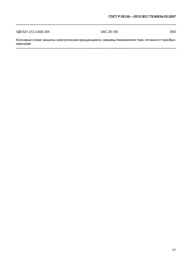 | Название рус.: | Машины электрические вращающиеся. Часть 25. Руководство по конструкции и характеристикам машин переменного тока, специально предназначенных для питания от преобразователей |