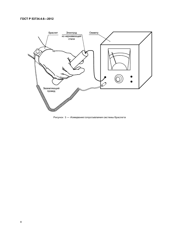 Настоящий стандарт содержит описание электрических и механических испытаний, устанавливает предельные характеристики заземляющих браслетов.