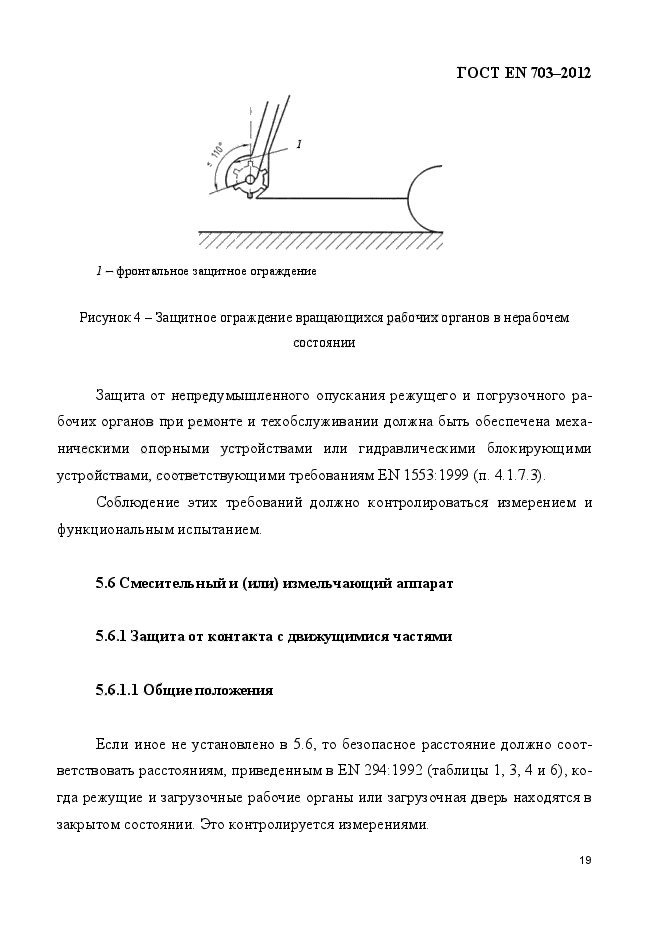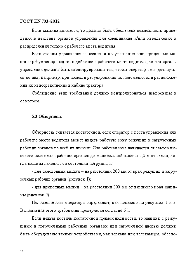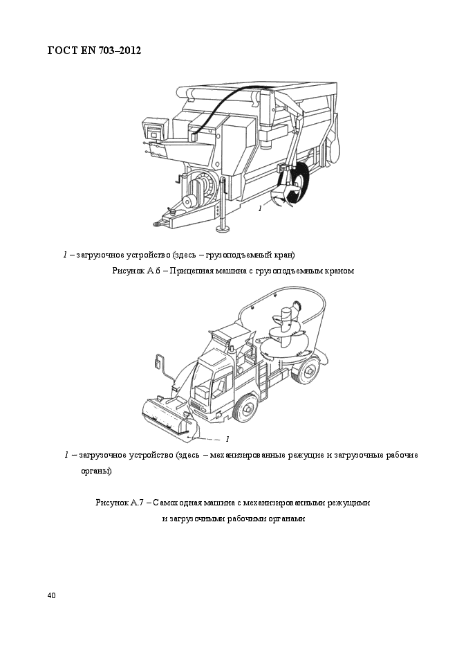| Область и условия применения: | Настоящий стандарт, применяемый совместно с EN ISO 4254-1, устанавливает требования безопасности и их контроля при разработке и изготовлении навесных, полунавесных, полуприцепных, прицепных или самоходных машин, которые управляются одним оператором и выполняют две или более функции: загрузка, смешивание, измельчение и распределение силоса и (или) иных кормов. Стандарт также включает машины, оборудованные грузоподъемным краном. Кроме того, стандарт устанавливает вид документации по безопасной эксплуатации (включая остаточные риски), предоставляемой изготовителем.