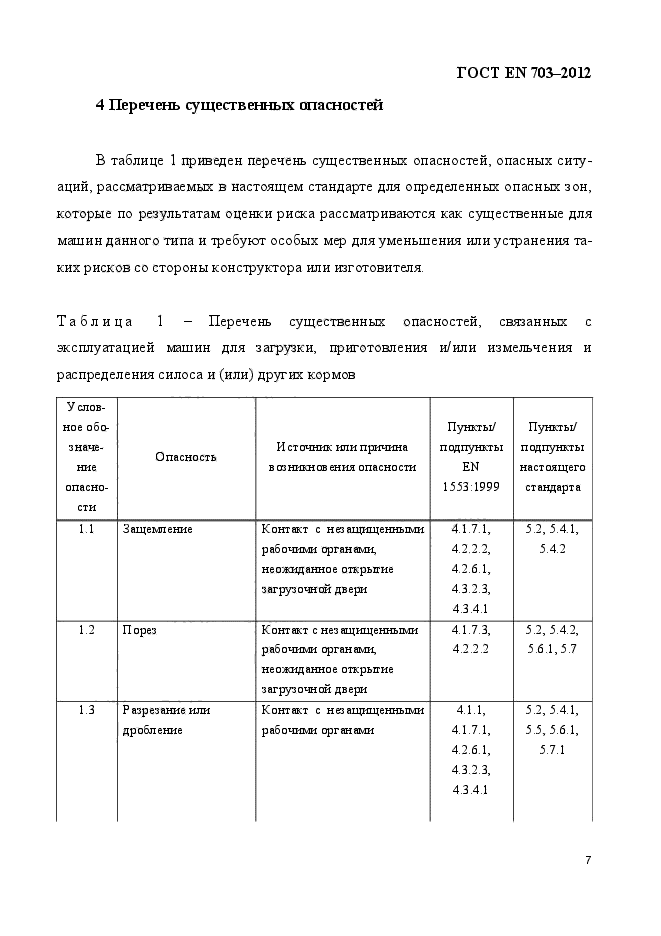 Настоящий стандарт рассматривает все существенные опасности, опасные ситуации и события в отношении машин для загрузки, смешивания и (или) измельчения и распределения силоса и (или) других кормов при их использовании по назначению в условиях, предусмотренных изготовителем и перечисленных в разделе 4, кроме опасностей, возникающих при: