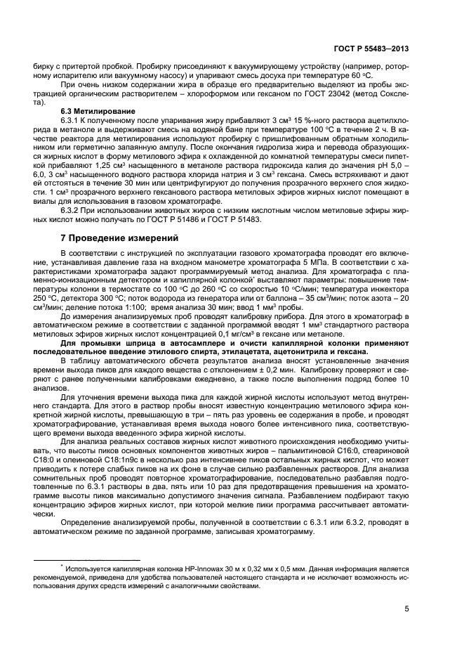 Настоящий стандарт распространяется на мясо, субпродукты, жир-сырец, мясные и мясосодержащие продукты, продукты из шпика и устанавливает метод газовой хроматографии для определения качественного и количественного состава жирных кислот жировой части продукта.