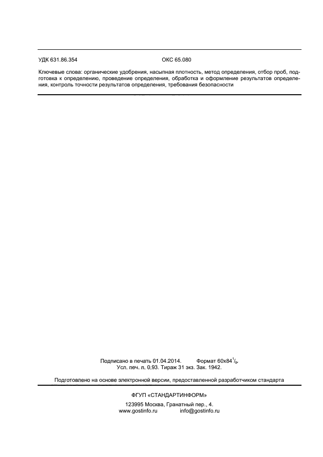 | Название рус.: | Удобрения органические. Метод определения насыпной плотности |