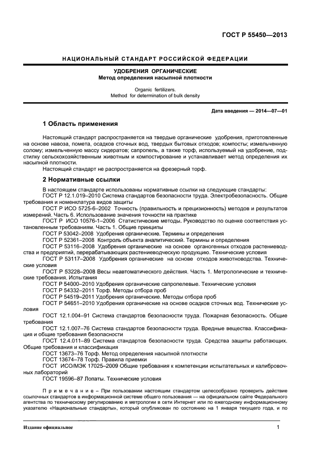 Настоящий стандарт распространяется на твердые органические удобрения, приготовленные на основе навоза, помета, осадков сточных вод, твердых бытовых отходов; компосты; измельченную солому; измельченную массу сидератов; сапропель, а также торф, используемый на удобрение, подстилку сельскохозяйственным животным и компостирование и устанавливает метод определения их насыпной плотности.