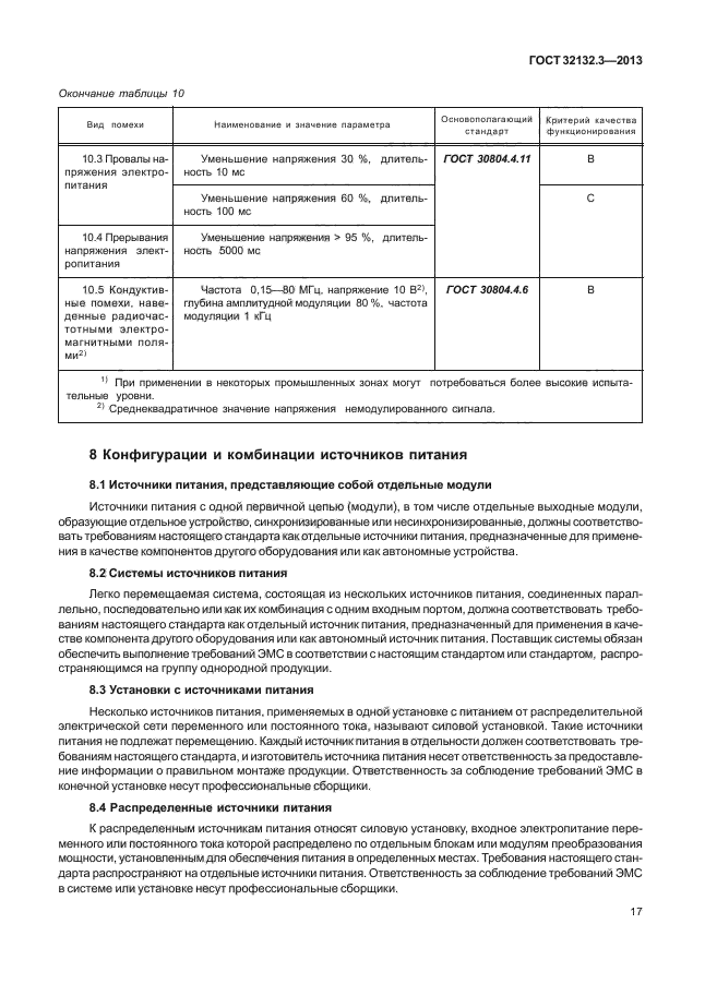 Настоящий стандарт применяют для данной категории источников питания только в качестве вспомогательного стандарта при установлении обоснованных требований ЭМС и выборе применимых стандартов ЭМС, распространяющихся на групппы однородной продукции