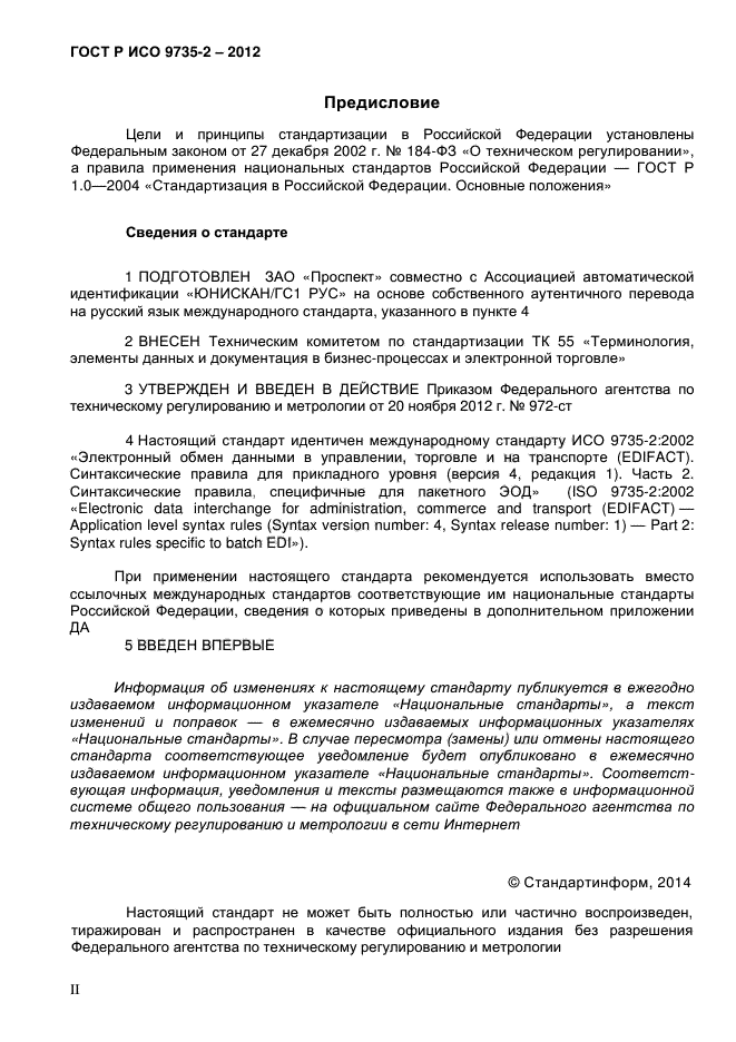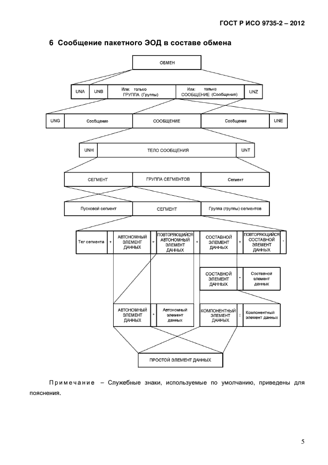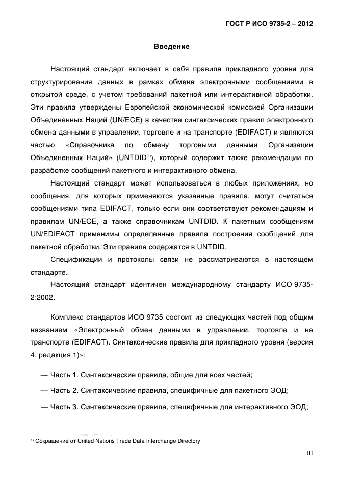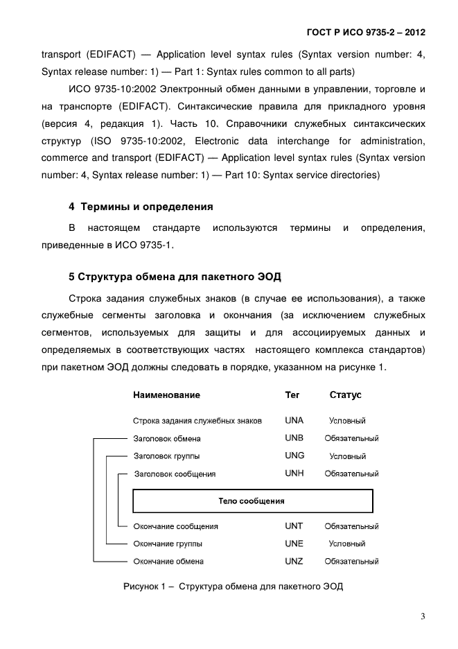 Настоящий стандарт устанавливает синтаксические правила, специально предназначенные для форматирования пакетных сообщений, используемых в обмене между прикладными компьютерными системами. Сведения, касающиеся передачи пакетов в пакетной среде, изложены в ИСО 9735-8
