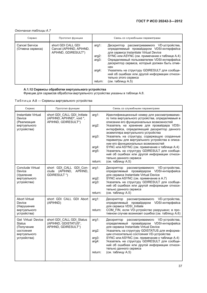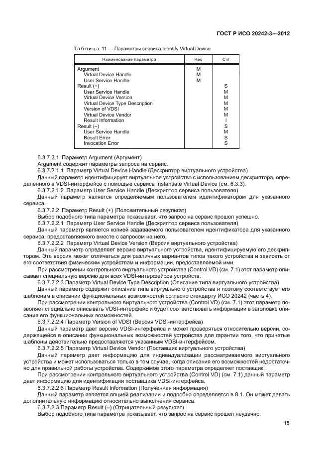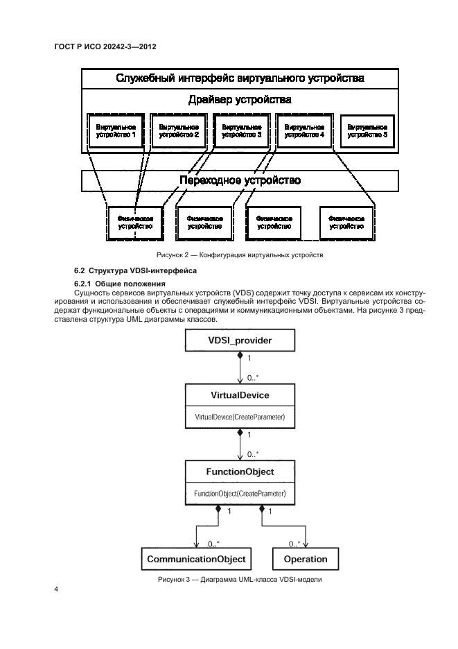В настоящем стандарте установлен служебный интерфейс, предназначенный для связи с виртуальными устройствами, обладающими функциональными возможностями программных модулей и физических устройств, доступ к которым осуществляется с помощью сервисов управления ресурсами согласно ИСО 20242-2