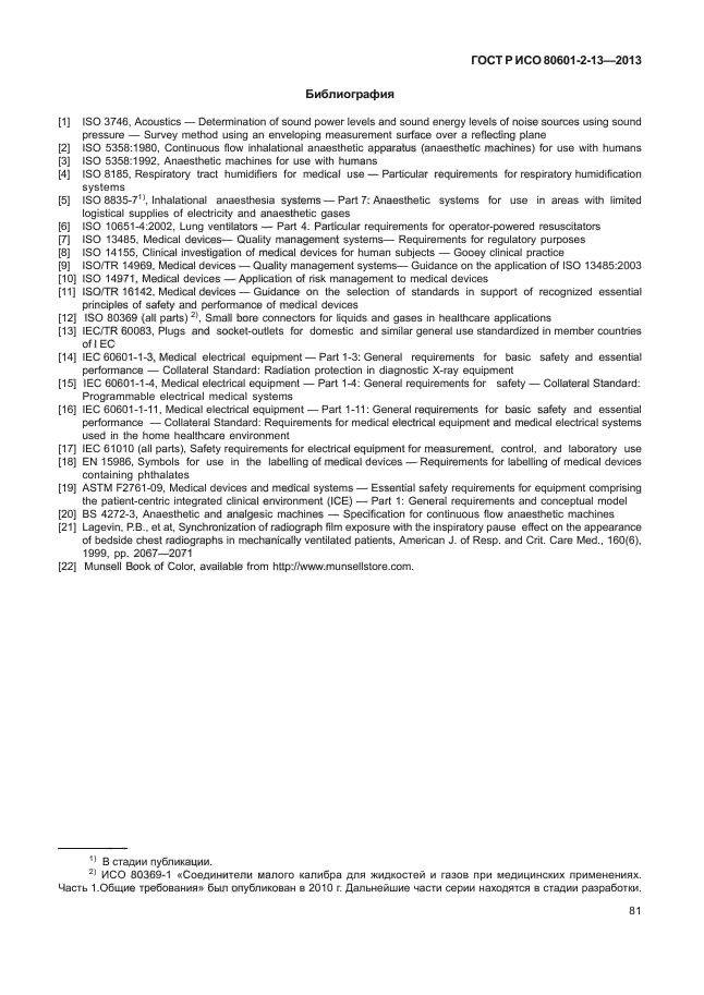 | Название рус.: | Изделия медицинские электрические. Часть 2-13. Частные требования безопасности с учетом основных функциональных характеристик к анестезиологическим комплексам |