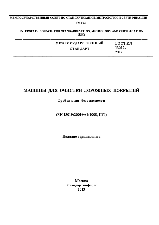 | Название рус.: | Машины для очистки дорожных покрытий. Требования безопасности |