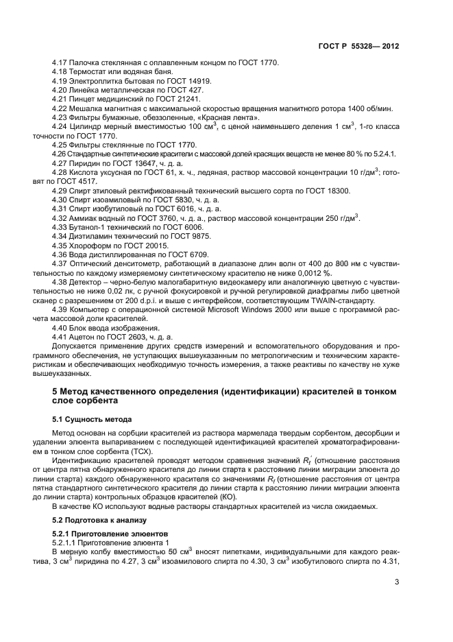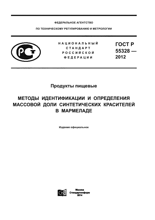 Настоящий стандарт распространяется на мармелад и устанавливает хроматографический (в тонком слое сорбента) метод качественного определения (идентификации) и денситометрический (с компьютерной обработкой хроматограмм) метод определения массовой доли синтетических красителей