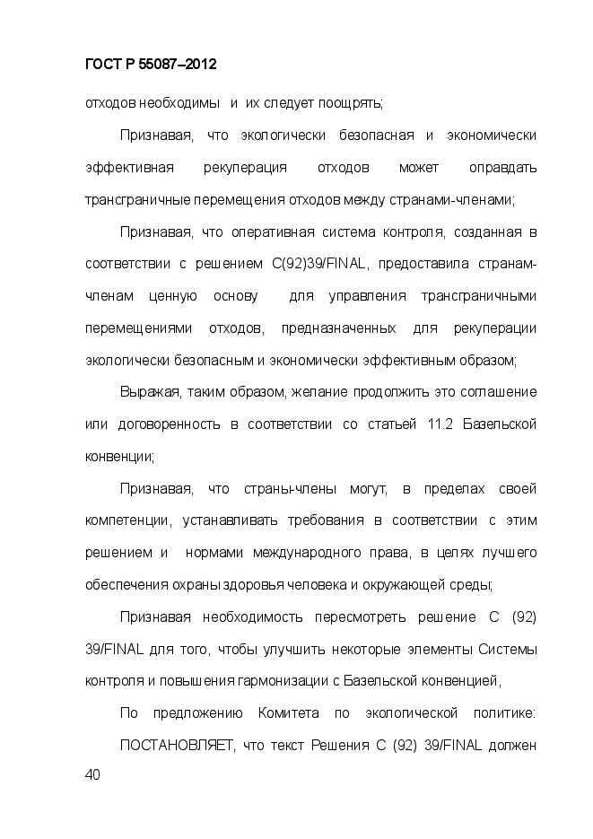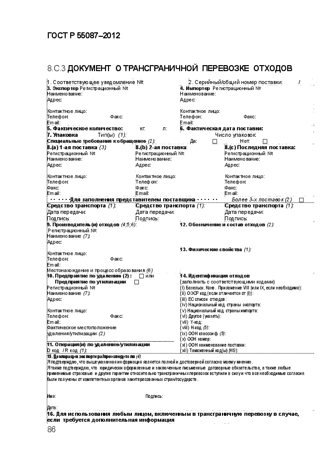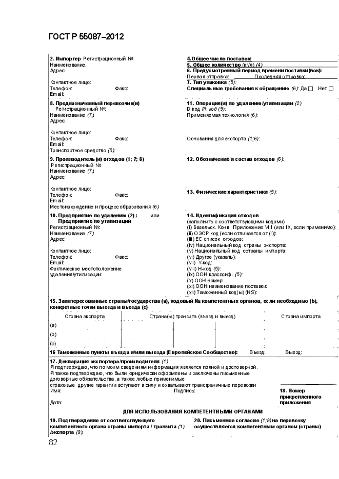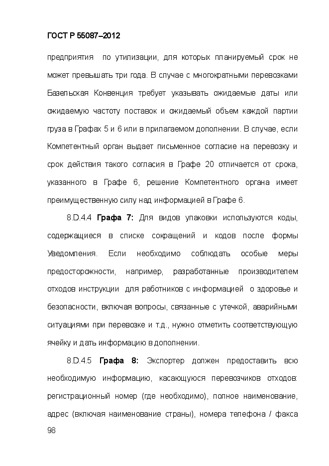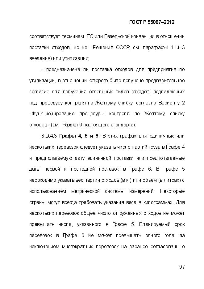 | Область и условия применения: | Настоящий стандарт устанавливает требования к регулированию трансграничной перевозки опасных отходов и их удаления, с учетом классификации и характеристик опасных отходов.