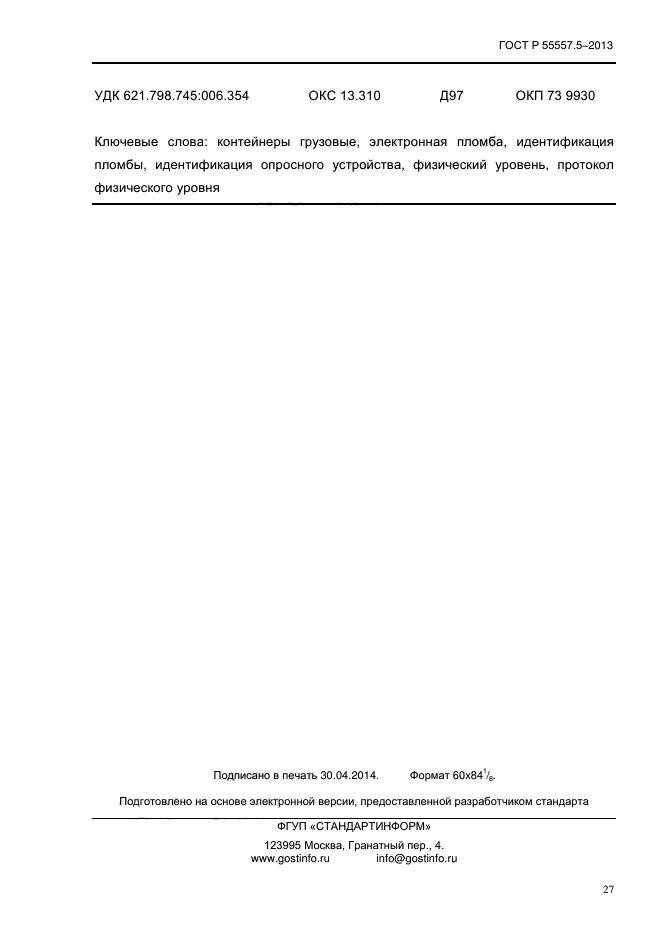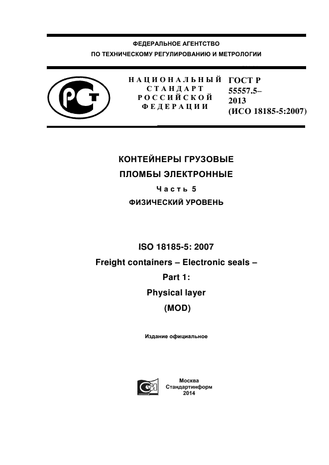 | Название рус.: | Контейнеры грузовые. Пломбы электронные. Часть 5. Физический уровень |