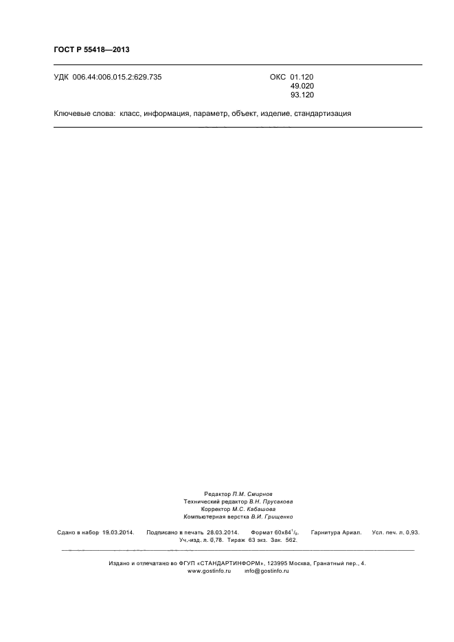 | Область и условия применения: | Настоящий стандарт распространяется на процессы формирования обобщенных понятий, которые формируются из множества конкретных физических величин, характеризующих изучаемые объекты, величин, обладающих некоторыми одинаковыми свойствами, и устанавливает критерии распределения свойств, описывающих изучаемый объект, на классы.