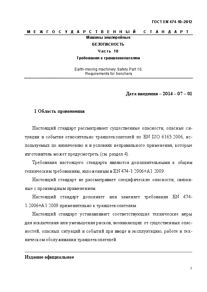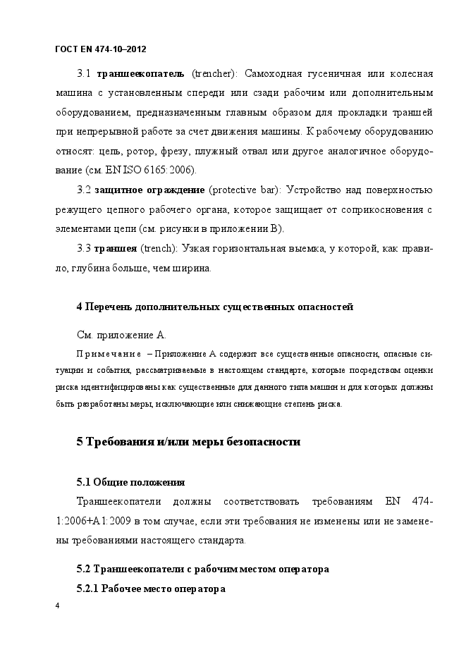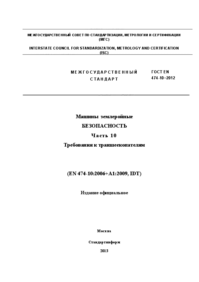 | Название рус.: | Машины землеройные. Безопасность. Часть 10. Требования к траншеекопателям |