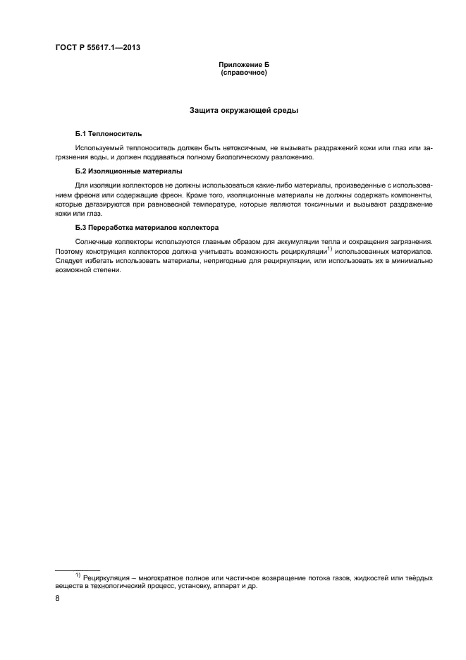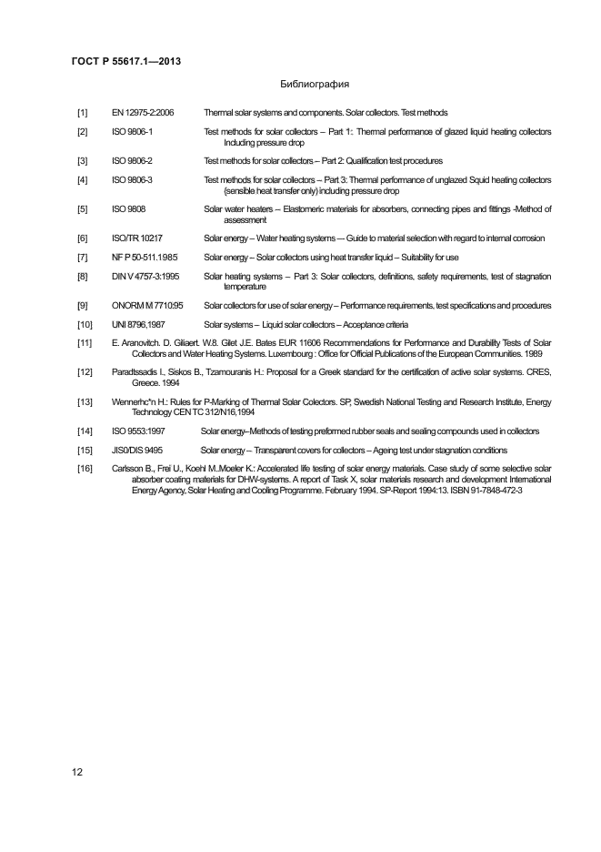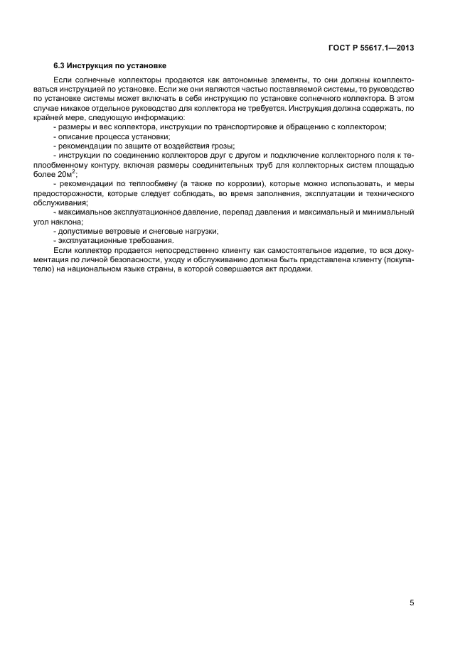| Область и условия применения: | Настоящий стандарт устанавливает требования к долговечности (включая механическую прочность), надежности и безопасности жидкостных солнечных коллекторов. Он также включает требования к испытаниям для оценки соответствия данным требованиям.
