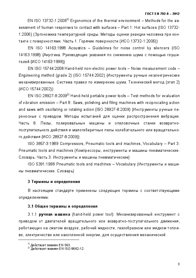 Настоящий стандарт распространяется на ручные неэлектрические машины с приводом от двигателей вращательного или возвратно-поступательного движения, работающих на сжатом воздухе или рабочей жидкости, удерживаемые при эксплуатации оператором при помощи: