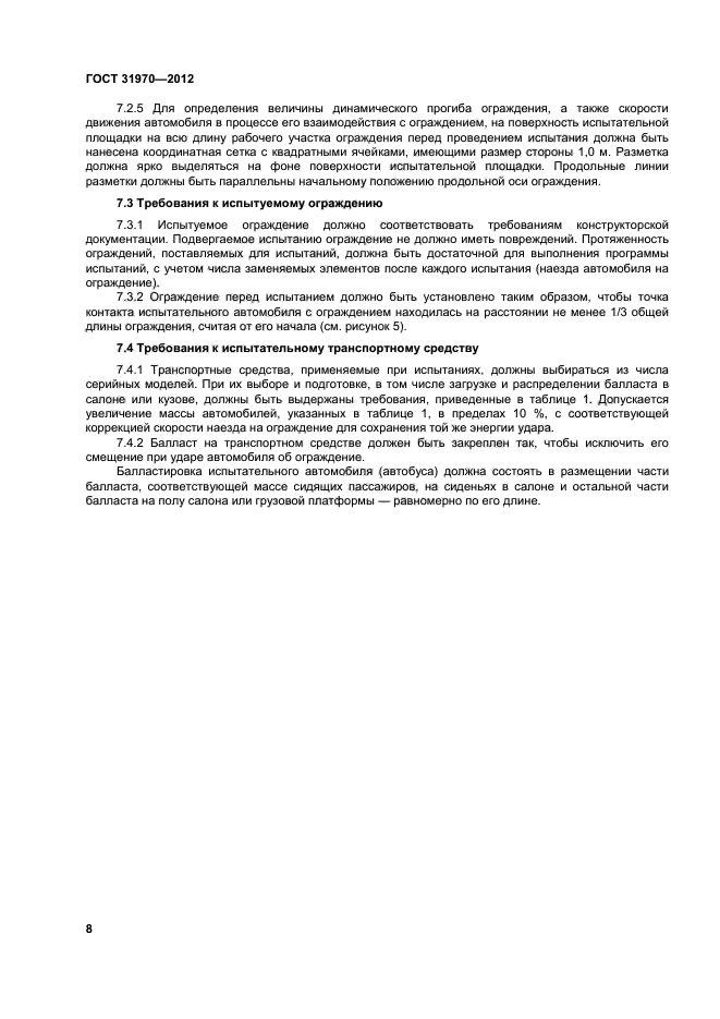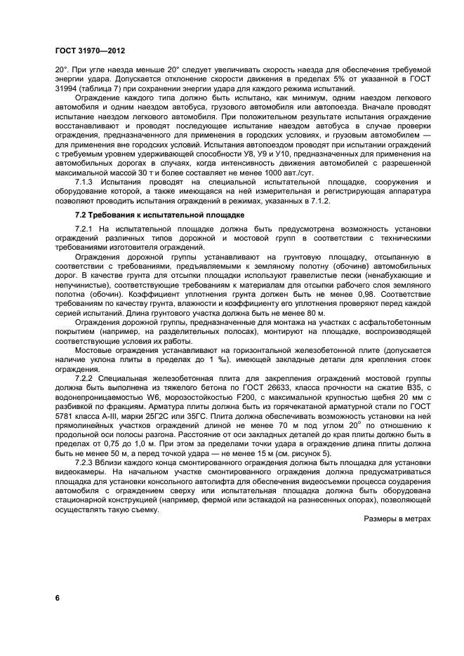 Настоящий стандарт распространяется на дорожные удерживающие боковые ограждения по ГОСТ 31994 и устанавливает требования к методам испытаний этих ограждений, проводящихся в целях подтверждения соответствия ограждений требованиям безопасности и определения их потребительских характеристик (удерживающей способности, динамического прогиба и рабочей ширины ограждений)