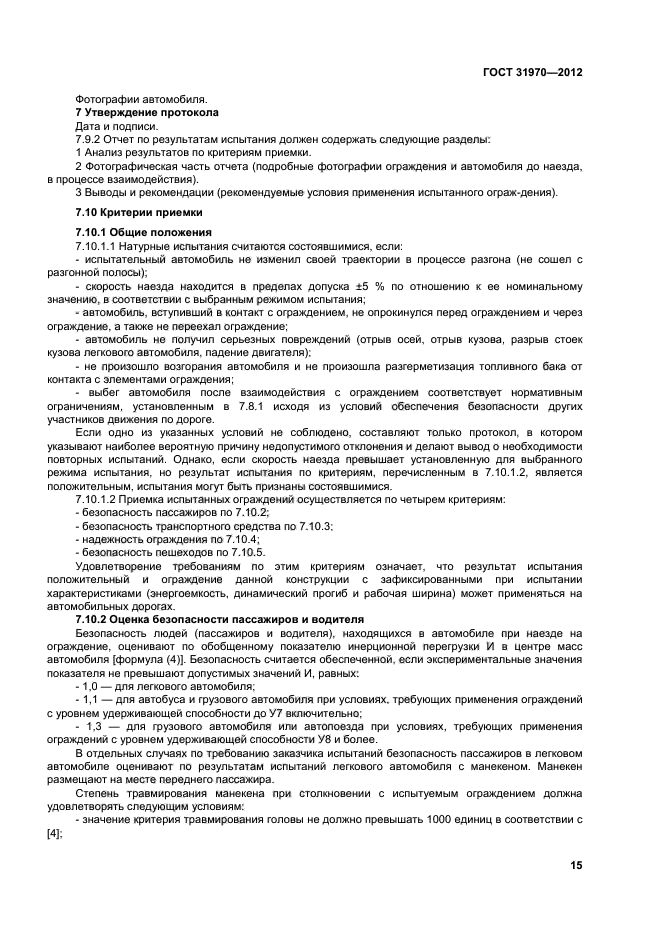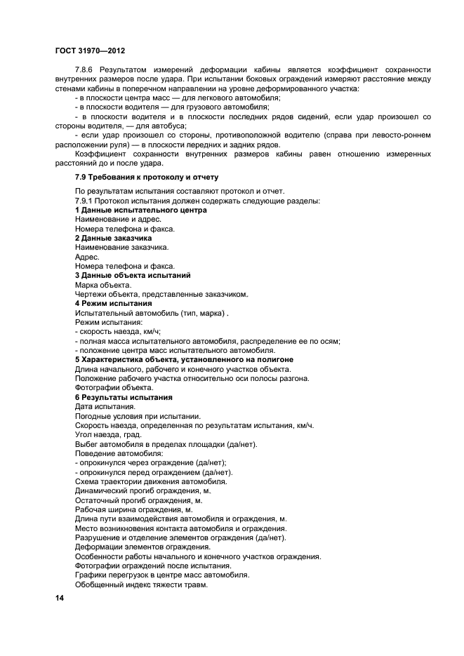 | Область и условия применения: | Настоящий стандарт распространяется на дорожные удерживающие боковые ограждения по ГОСТ 31994 и устанавливает требования к методам испытаний этих ограждений, проводящихся в целях подтверждения соответствия ограждений требованиям безопасности и определения их потребительских характеристик (удерживающей способности, динамического прогиба и рабочей ширины ограждений) |