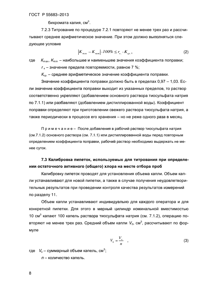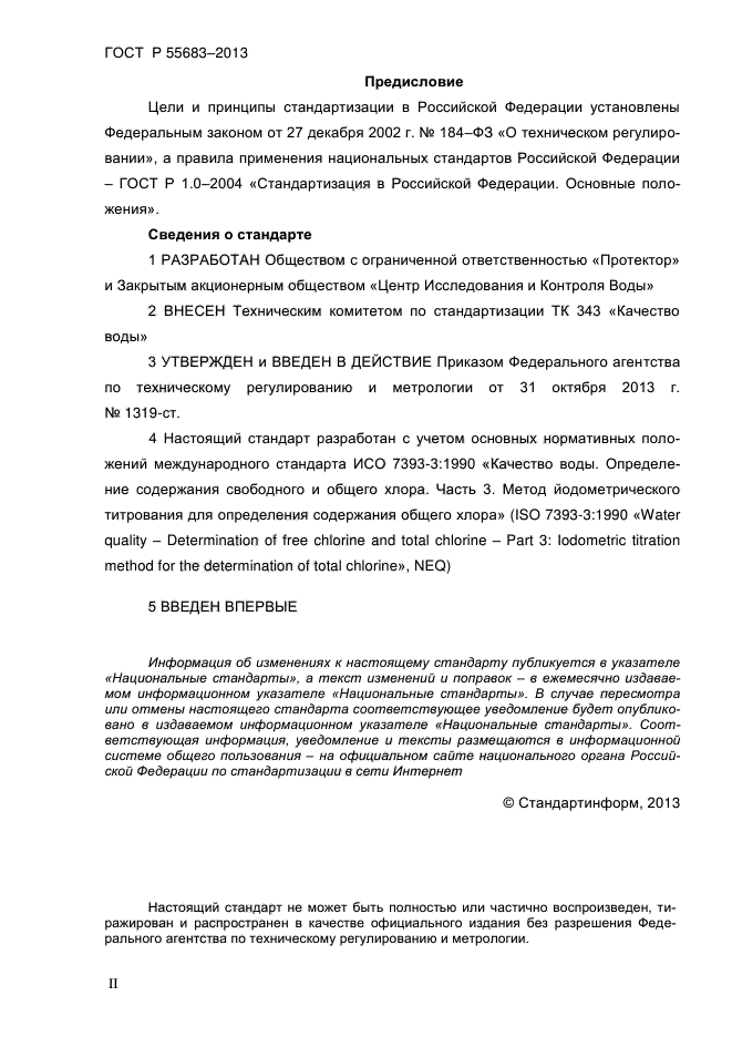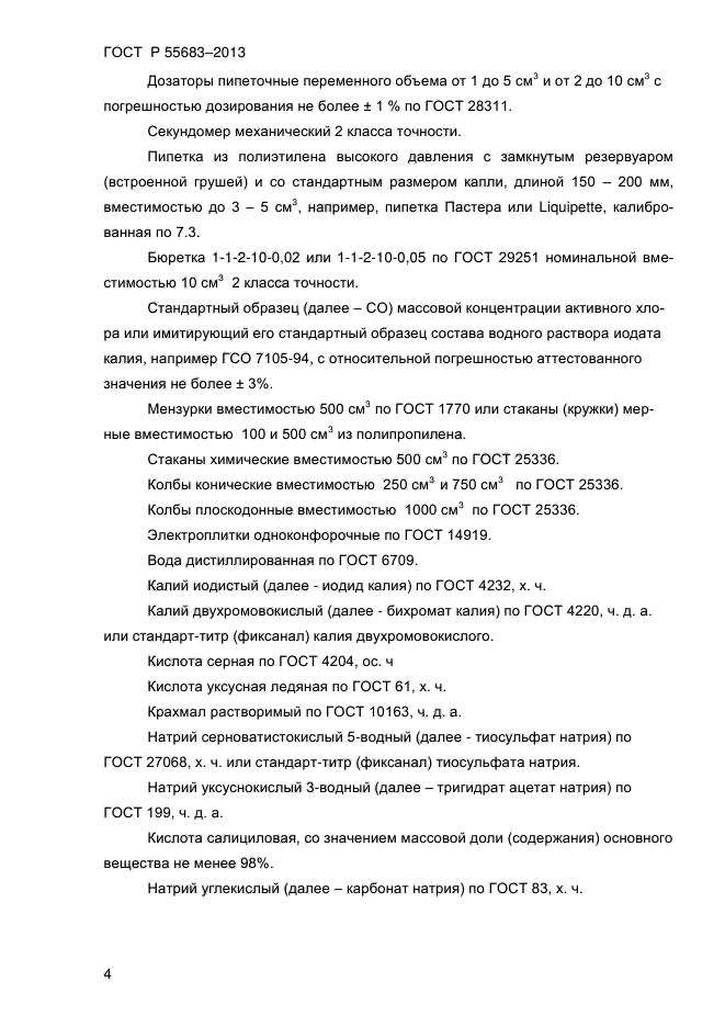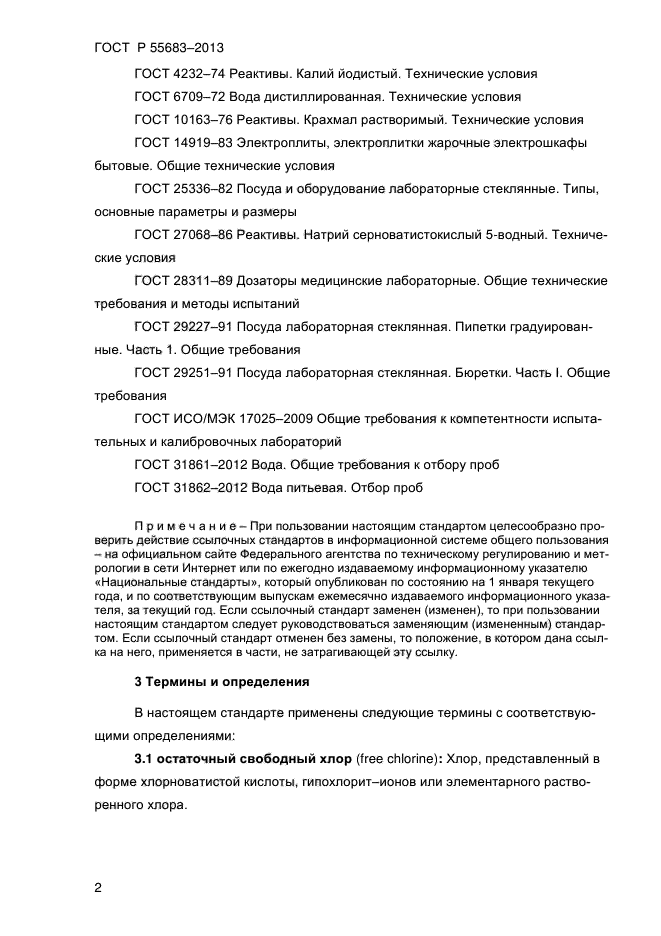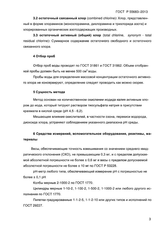 | Область и условия применения: | Настоящий стандарт распространяется на питьевую воду (в том числе воду бассейнов) и устанавливает титриметрический метод определения массовой концентрации остаточного активного (общего) хлора от 0,15 до 2,0 мг/дм куб. на месте отбора проб |