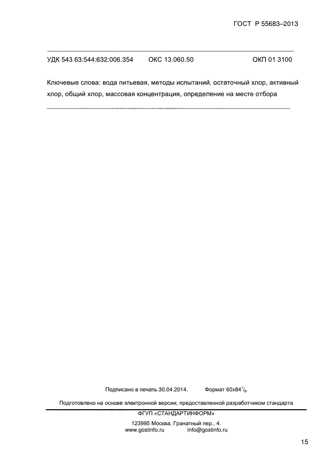 | Название рус.: | Вода питьевая. Метод определения содержания остаточного активного (общего) хлора на месте отбора проб |