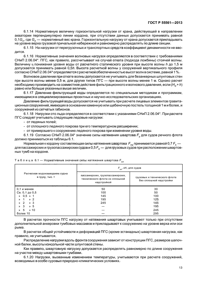 | Область и условия применения: | Настоящий стандарт устанавливает общие требования к проектированию (включая инженерные изыскания), строительству, приемке в эксплуатацию, эксплуатации, ремонту, реконструкции, выводу из эксплуатации и ликвидации портовых гидротехнических сооружений в составе портов, портовых районов и участков, а также отдельных причалов на внутренних водных путях Российской Федерации.