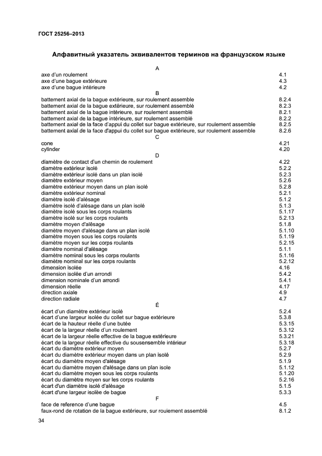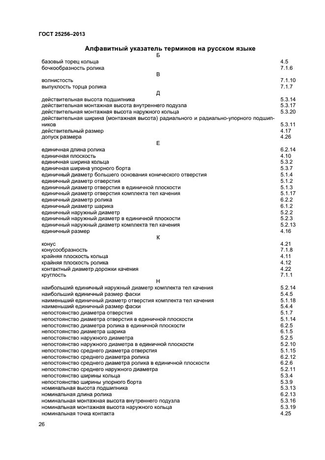 Термины, установленные настоящим стандартом, рекомендуются для применения во всех видах документации, относящейся к подшипникам качения, входящей в сферу работ по стандартизации и (или) использующей результаты этих работ. Допускается применение терминов, не установленных настоящим стандартом, отражающих специальные конструктивные особенности подшипников качения, их деталей и элементов, но не противоречащих терминам и определениям настоящего стандарта |