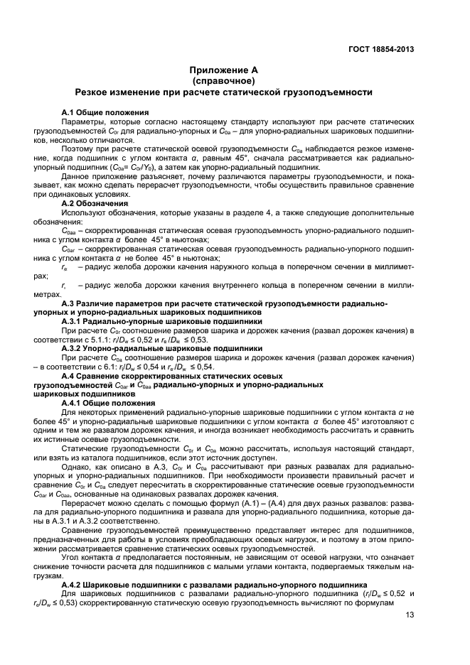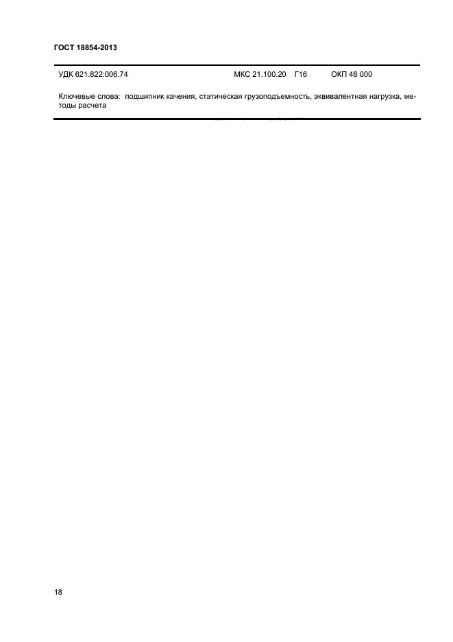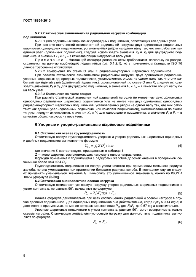 Настоящий стандарт устанавливает методы расчета статической грузоподъемности и статической эквивалентной нагрузки подшипников качения, которые изготовлены из широко используемой высококачественной закаленной подшипниковой стали в условиях современного, хорошо налаженного производства, имеют обычную конструкцию и форму контактных поверхностей качения и соответствуют размерам, указанным в соответствующих стандартах.