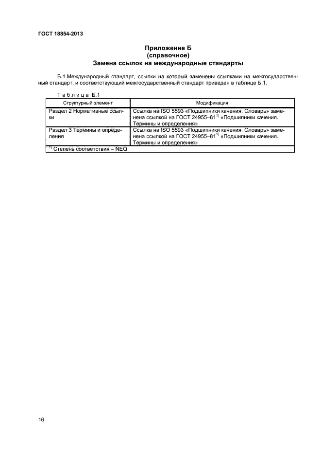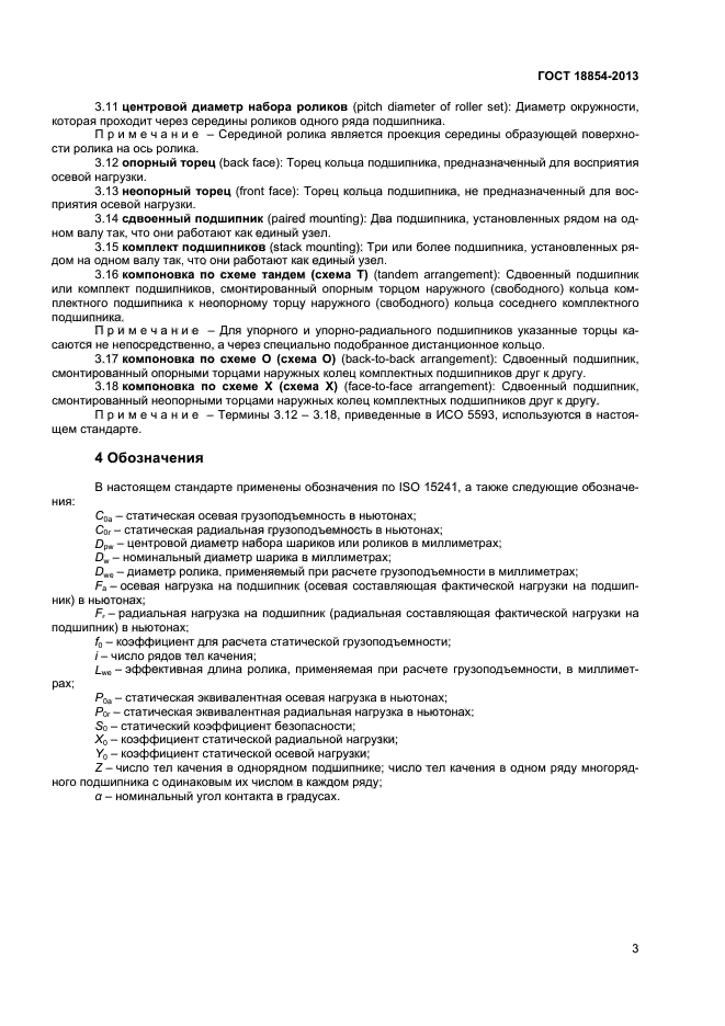 Настоящий стандарт не распространяется на конструкции, в которых тела качения работают непосредственно по поверхности вала или корпуса, если только эта поверхность не является эквивалентной во всех отношениях поверхности подшипника, которую она заменяет