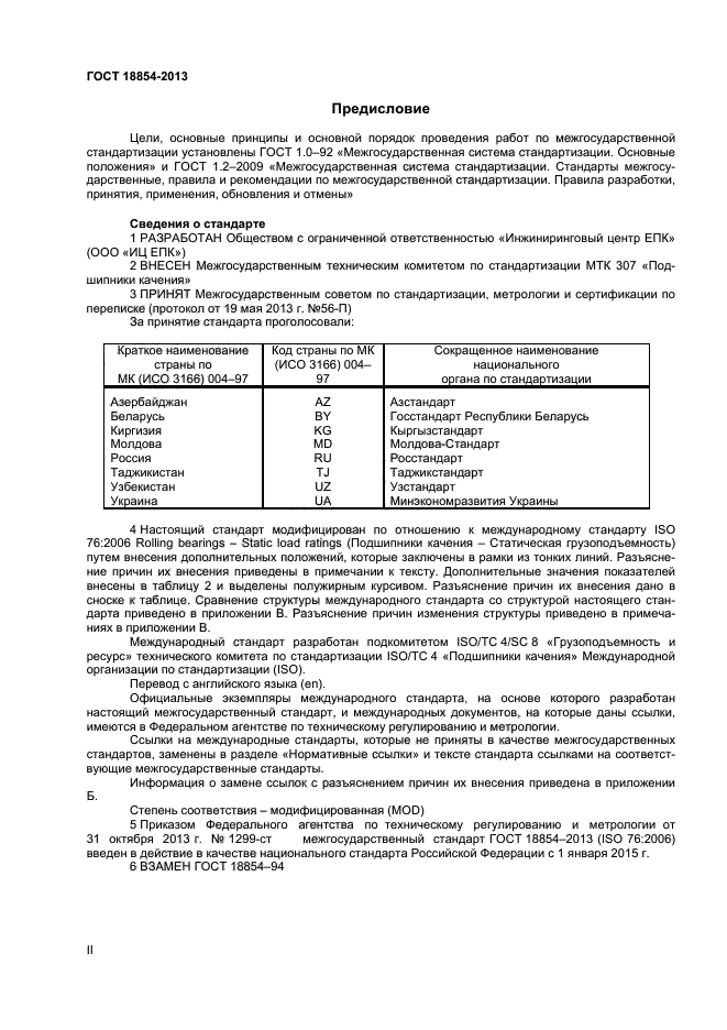 | Область и условия применения: | Настоящий стандарт устанавливает методы расчета статической грузоподъемности и статической эквивалентной нагрузки подшипников качения, которые изготовлены из широко используемой высококачественной закаленной подшипниковой стали в условиях современного, хорошо налаженного производства, имеют обычную конструкцию и форму контактных поверхностей качения и соответствуют размерам, указанным в соответствующих стандартах.