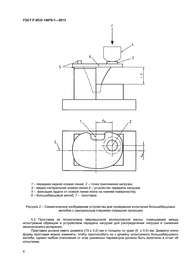 Настоящий стандарт устанавливает метод испытания для определения эксплуатационных свойств в определенных лабораторных условиях большеберцовых желобов, используемых при протезировании коленного сустава для обеспечения опоры и фиксации суставных поверхностей из полимерных материалов.