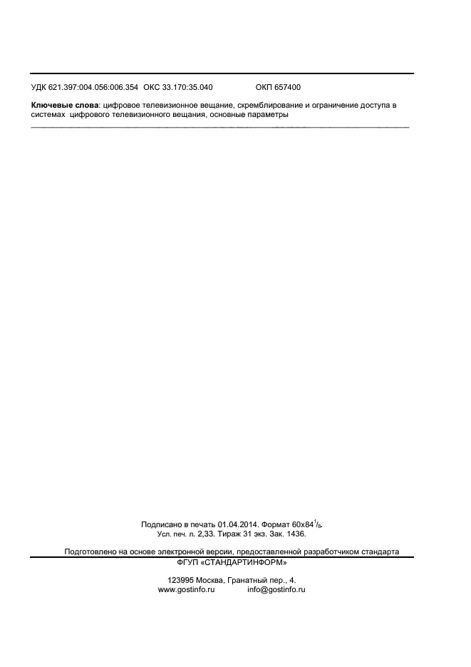 | Название рус.: | Телевидение вещательное цифровое. Обеспечение скремблирования и ограничения доступа в системах цифрового телевизионного вещания. Основные параметры |
